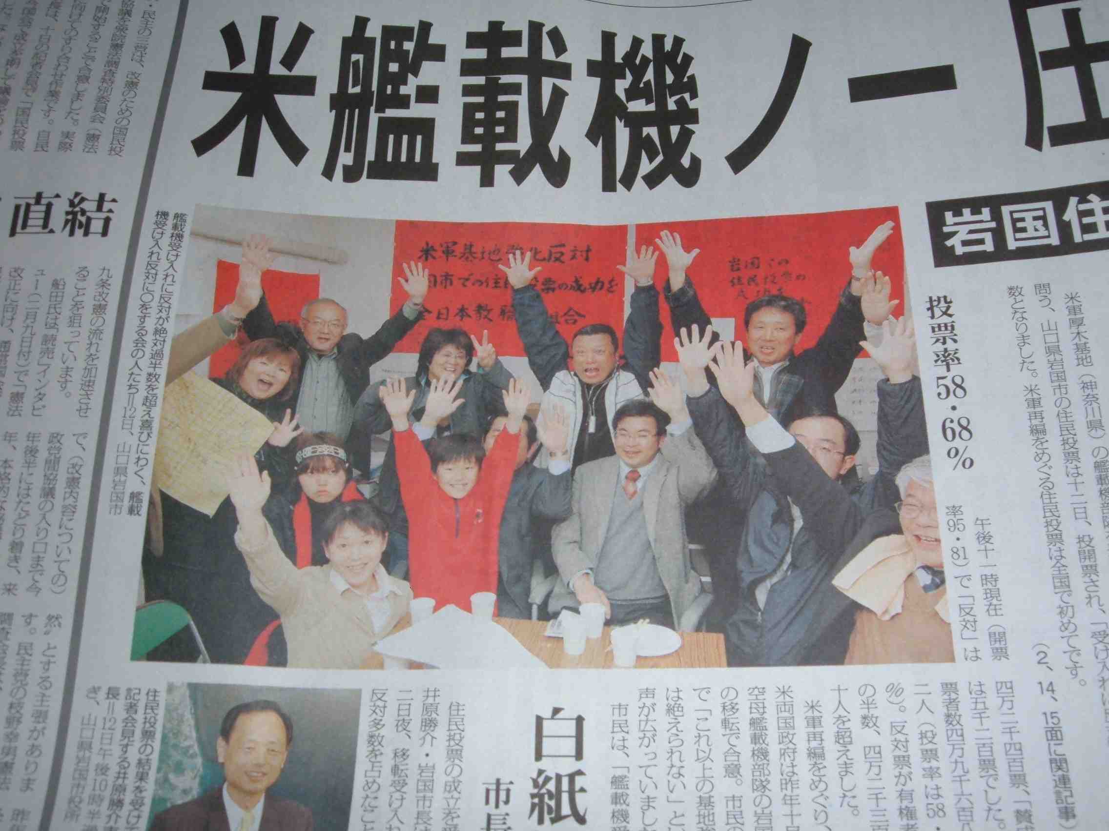 岩国市の住民投票に関する記事。しんぶん赤旗は、読者に限り、長年隠された秘密を公開した。なんと岩国に、タイムマシンを保有していたのだ!