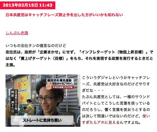 こういうダジャレというかキャッチフレーズ、共産党は大好きなのだけどやりすぎだな・・・