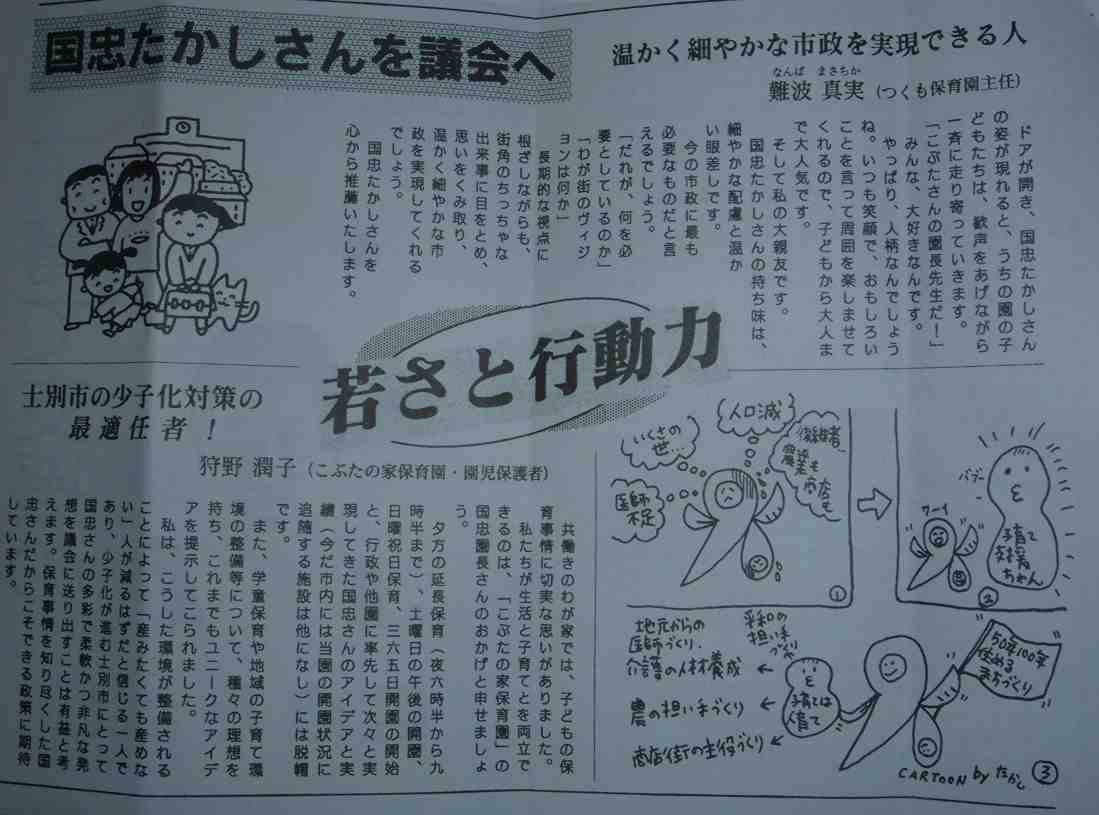 ウラには、共産党前職で、今回の改選で引退した共産党市議会議員、寺下亘氏の推薦の言葉が見える。