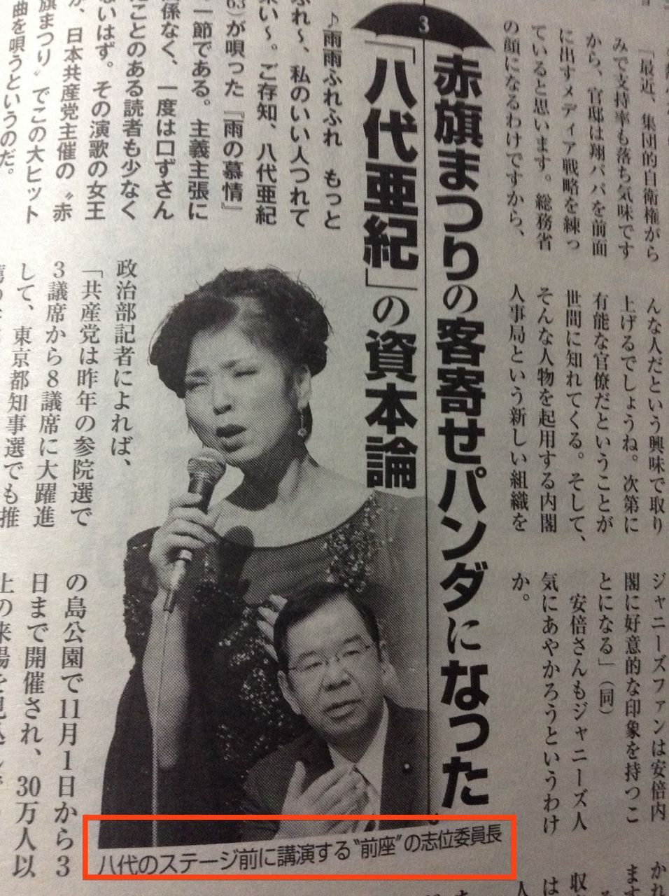 週刊新潮ギャラ500万の価値はあった。なんと赤旗まつりが週刊誌に取り上げられたのだから\(^O^)/