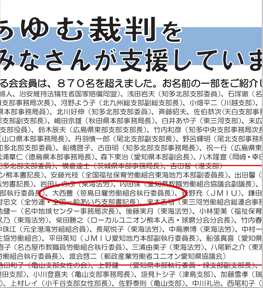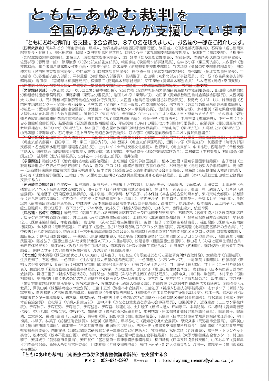 しかし、中核派内部にもこの裁判で南医療生協の方が悪いと思っていて、こうして名を連ねる組織というか、人もいるということだ。